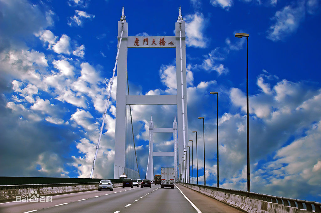 虎门大桥(Humen Bridge)是中国广东省境内一座连接广州市南沙区与东莞市虎门镇的过江通道,位于珠江干流之上,为珠江三角洲地区环线高速公路南部联络线(原莞佛高速公路)的组成部分。大桥东起东莞市太平立交,上跨狮子洋入海口,西至广州市南沙立交;线路全长15.76千米,主桥全长4.6千米;桥面为双向六车道高速公路,桥宽35.6米,设计速度120千米/小时;工程项目总投资额30.2亿元人民币。
