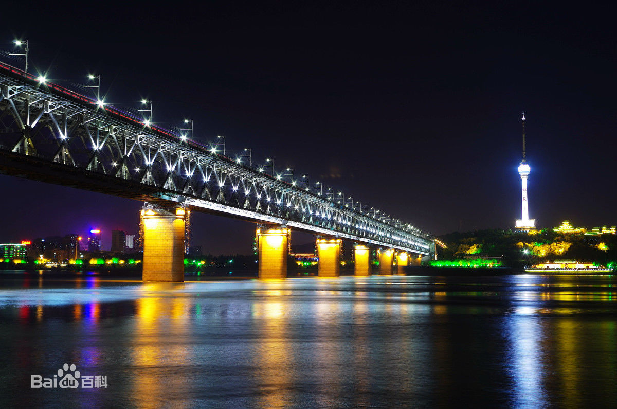 武汉长江大桥位于湖北省武汉市武昌区蛇山和汉阳龟山之间,是万里长江上的第一座大桥,也是新中国成立后在长江上修建的第一座公铁两用桥,被称为“万里长江第一桥”。武汉长江大桥建成伊始即成为武汉市的标志性建筑。全长约1670米,上层为公路桥(107国道),下层为双线铁路桥(京广铁路),桥身共有8墩9孔,每孔跨度为128米,桥下可通万吨巨轮。