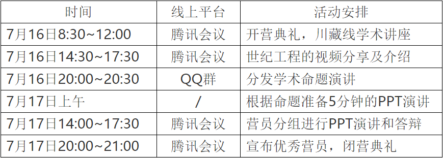 于2020年7月中旬举办以川藏线为主题的全国大学生学术夏令营活动,拟接收100名营员。