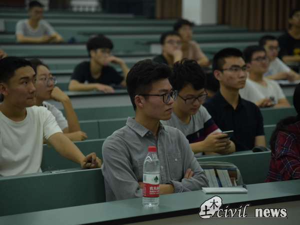 4月25日晚7:40,土木科技月桥梁承重组讲坛在X4352召开。会议由桥梁工程系的王骑老师主持。在会议开始前场内便座无虚席,气氛十分热烈。在王老师开讲时,场内又十分安静,同学们都十分专注的听着。