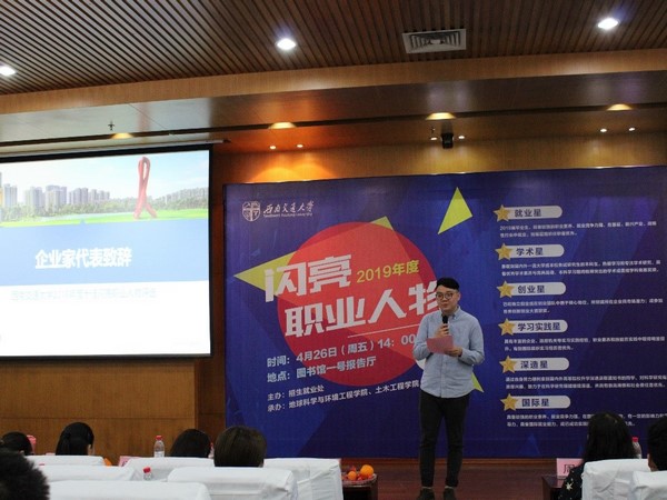 活动开始,彭黎明老师上台致辞。首先老师感谢各位老师和同学对本次活动的精心准备,感谢他们的辛勤付出,也对各位准毕业生表达了衷心的祝愿。然后老师和同学们分享了关于“选择”的体会,我们每一刻都在选择,或许它十分微小,但是我们不知道哪一次选择会给我们带来改变,让我们认真地选择,勇于探索,不断尝试,找到属于自己的美好未来。随后,企业代表刘晋熙先生也发表了致辞,表达了对我校学子的高度赞扬以及对我校教育工作的肯定。我们作为交大学子,内心也是十分的自豪!