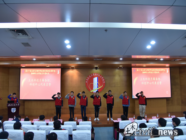 紧接着,土木科技月筹备组、科创中心代表上台宣誓。代表们充满激情的宣誓让大家感受到了科创人的热情与满满活力,也燃起了同学们对科技月的期待与向往。