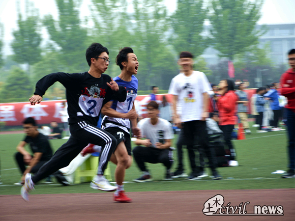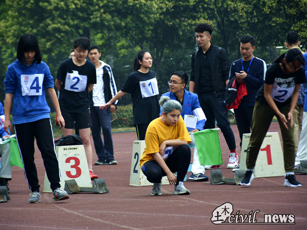教职工那边,土木学院更是取得了傲人的成绩。老师们挥臂一掷,将球抛向远处。男子60m比赛中,童万波老师突出重围,取得第二名,风采依旧。同时,女子立定跳远中刘怡老师也同样赢得了第二名。