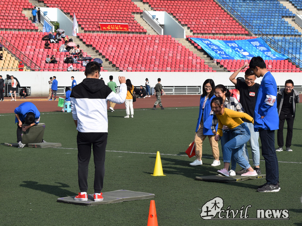 在这次趣味运动会中,土木的参赛队员们团结配合,给人不断带来惊喜。这样有趣的运动会不仅能带给同学们欢笑与快乐,更能在培养同学们团队意识的同时让其强身健体。土木学院的同学们在这次比赛中获得了优秀的成绩,在“跳绳接力”、“同舟共济”、“勇往直前”这三项中均取得了第一名的好成绩。