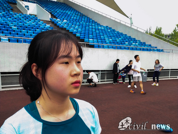 这次是17级土木6班的穆克达斯同学第二次参加校运会,她取得了女子100米短跑第七名的成绩,她所在的团队是女子4×400米的第三名。她说自己这次参赛的心态较前一次有较大的变化,这次是“佛系”参赛,重在享受整个过程,不太在意比赛上的得失。她表示这可能是她最后一次参加校运会,她对学弟学妹们给予了厚望,希望他们能继续为土木学院争光。