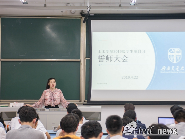 4月22日晚上七点半,土木学院2016级学生晚自习誓师大会在犀浦校区X2424教室举行。到场的有16级的四位辅导员老师:付真珍老师、吴文芊老师、李裕老师与向京华老师,以及16级22个班级的班长和学业提高班的同学。
