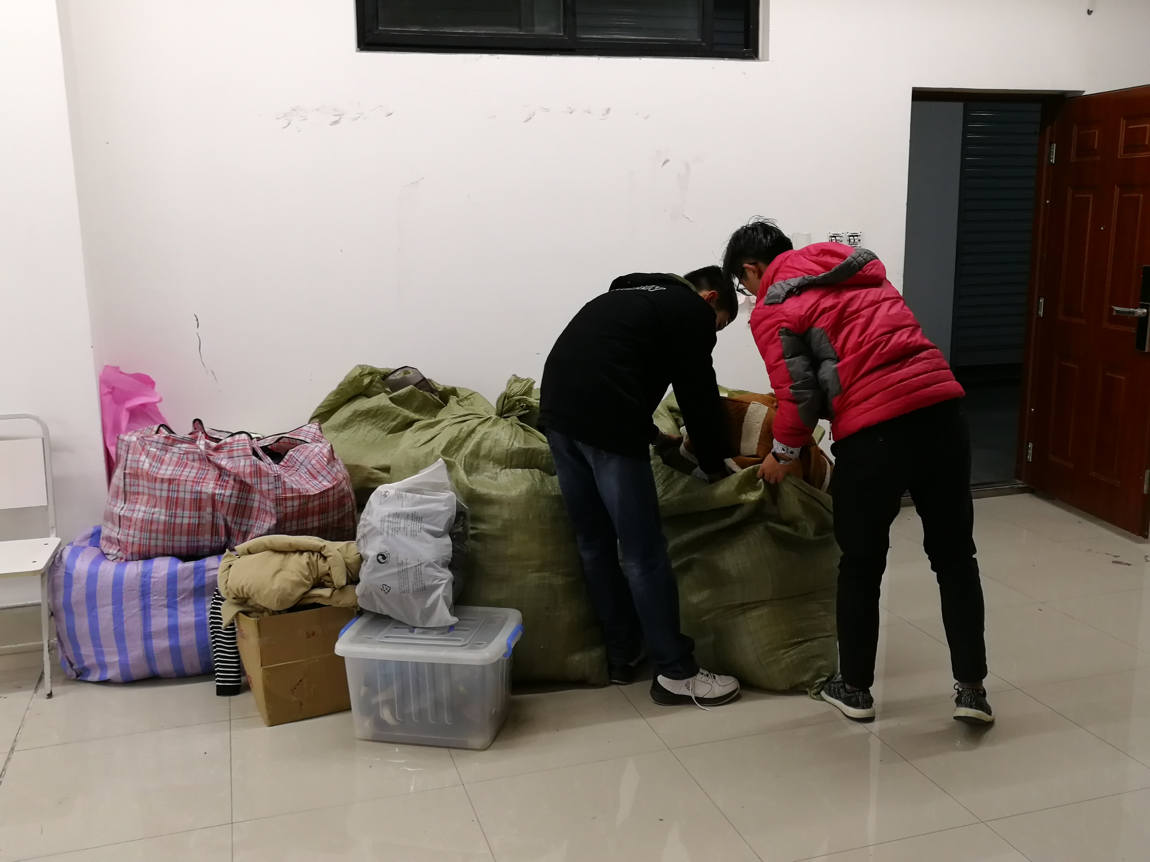 无数次的上楼下楼,怀抱着一大堆的衣服,满满当当的麻袋。在这个收取衣物的过程中,有募捐了一个超大超暖的布偶的,有温暖的小姐姐觉得衣物太多帮助志愿者送到楼下来的,整个晚上,天上仿佛都存在着泡泡,这是属于我们的温柔时刻。