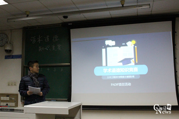 为了促进同学们对学术道德的认识,严格遵守相关准则规范,增进诚信意识,12月7日下午五点半,2018级研究生隧道2班在九里校区逸夫馆4421开展了以学术道德竞赛为主题的班级PADP活动。此次活动由党支书戚幸鑫同学主持,隧道2班同学全员参与。