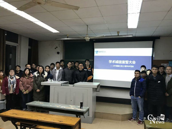 最后,2018级研究生岩土1班举行了庄严的学术诚信宣誓仪式,誓词如下:
