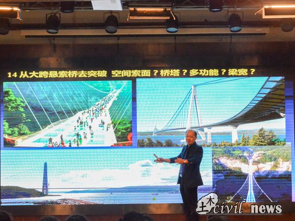 紧接着,郑教授从桥梁种类的角度为大家提供思路,当说到铁路桥时,他表示,铁路是我校特色,铁路桥也是我校参赛同学们的优势,以此增长大家的信心,并鼓励大家设计铁路桥。随后郑教授又从桥型、构件和材料几个方面给大家提供了值得参考的设计的突破口,带着大家欣赏世界特色桥梁,并对这些桥梁予以生动的介绍。介绍完具体的桥梁后,郑教授又提出要大胆在组合中创新,在简单中寻求突破。