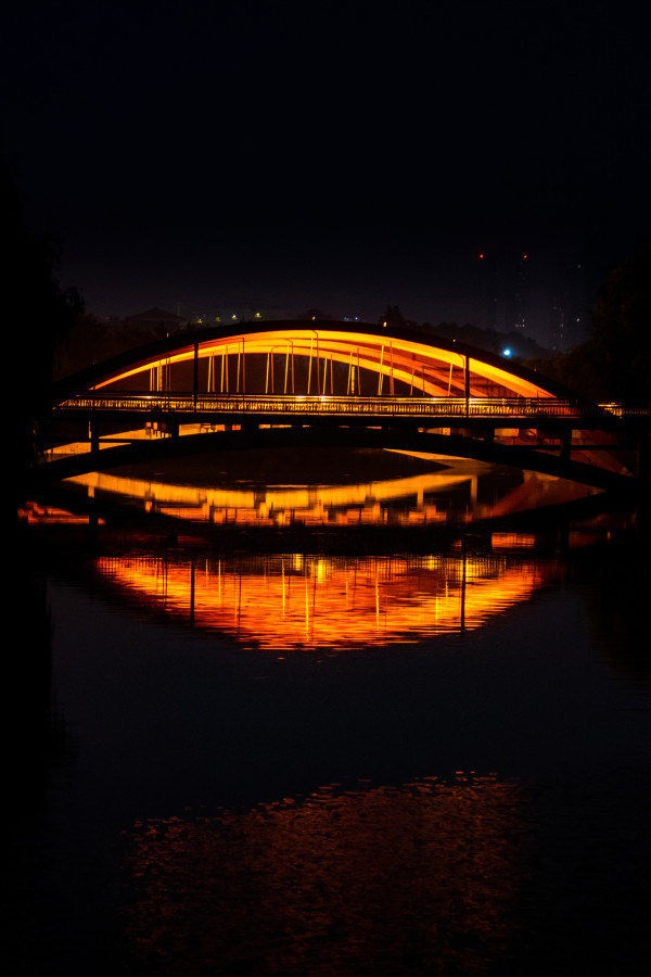 虹桥的灯影斑驳与往来匆匆,相信每一位交大人都习以为常,但它凌晨两点的孤独寂静又有几人体会?为了竞赛,为了学习,他曾坚持一个半月这样的日子。明月不谙勤学之苦,总爱藏于云中,独享安逸,只有昏黄的灯光照亮他的前路,伴他度过漫漫时光。