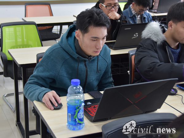 之后,张老师讲到《全国大学生结构设计信息技术大赛》赛题,并从《软件熟悉》的资料、说明书、实训,《建模》阶段成果检查、内审会和评奖几个大块为大家进行了讲解。并且把资料上传,让同学跟着老师的讲解在各自的电脑上进行实战操作,老师则在下面巡视进行详细指导。