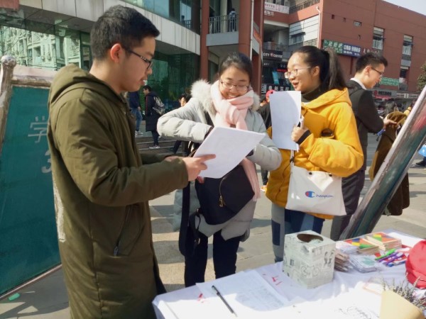 的同学们宣传保护小动物的知识,并筹集富有爱心的交大学子捐款。