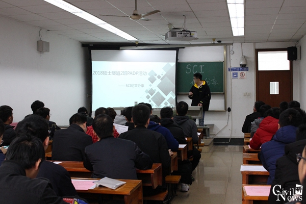 为了解决在论文撰写过程中的疑惑以及如何发表高水平的论文。11月30号下午一点,2018级研究生隧道2班在九里校区逸夫馆4304A举行了以“SCI论文交流”为主题的班级PADP活动。活动由班长赵大权同学主持,隧道2班同学全员参与。