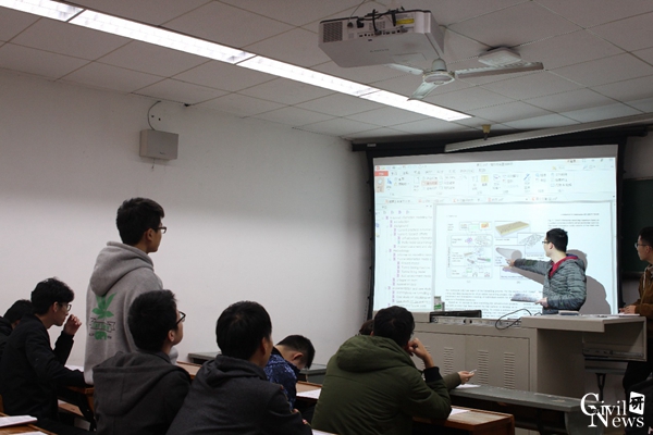 接着,在一片热烈的掌声中,第一小组的成员开始展示他们组的成果,第一小组成员搜集到的论文题目为《上海软土地铁隧道的长期沉降特性》,他们以这篇文章为例分别从论文结构、论文语言、图形绘制、专业知识、参考文献5个方面介绍了自己对于论文撰写的理解。