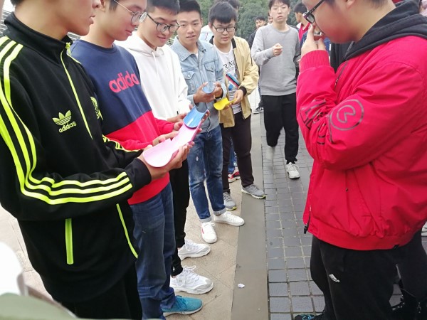 紧接着我们开始了第二个游戏——你画我猜。每个队分成两组,每组五个人,排成一列,游戏负责人将本轮的词语或者成语告知每组的第一个人,然后第一个人开始画,画完后将图画给后一个人看,重复此操作,最后每组的最后一个人说出他猜出的答案。游戏过程中,部分队员看完队友的图画后露出心领神会的笑容,而另外一部分队员看完队友的“神作”后哭笑不得,只能依样画葫芦,到最后一位队员时,自然就是一副黑人问号脸啦。其中最有意思的是,从最开始游戏负责人给出的“火锅”到队员画出的坦克,着实脑洞大开呀。