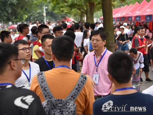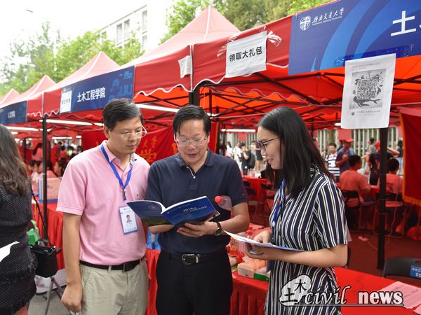 党委常委沈火明及各部处领导来到迎新点进行视察工作。学院党委副书记李锦红、辅导员黄雪娇就学院迎新工作特色向校领导们进行详细介绍,着重介绍了学院新生导航手册内容。校领导对新生导航手册中的安全专题、沟通表达提升计划部分提出了表扬,并提出了对于新生工作的相关建议。手册中关于新生入学教育、优秀学长学姐见面会等内容,特色鲜明,充分体现了土木学院对新生们的真诚关怀,也给校领导留下了深刻印象。