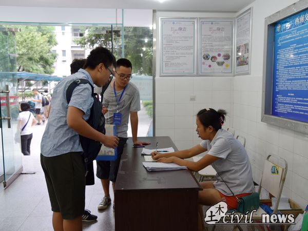 18级二十班助辅祝欣宇向记者介绍了他们的任务:“我们在这两天负责班里同学的接待工作,帮助他们报到注册,办理入住手续,以及了解和适应大学生活。”当问及作为女生助理辅导员的感受时,她说到:“土木学院是一个男生居多的学院,作为一名女生助辅,我们与新生可能没有那些男助辅与同学们交往的那么深,但是我相信我会和他们成为很好的朋友。”虽然工作非常辛苦和繁忙,天气时常变得非常炎热,但是助辅们都表示:“虽然很累,但是能与自己的学弟学妹们交流还是觉得十分开心的。”