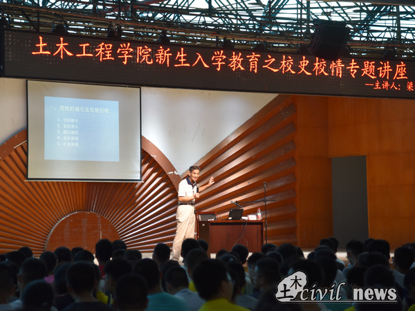 新生入学教育之校史校情专题讲座。主讲人梁锦堂老师声情并茂地为新生们讲解西南交大悠久绵长的历史及光辉过往。