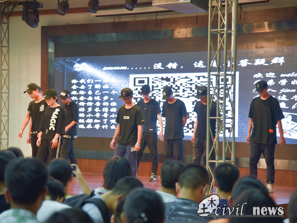 在随后上场的九大组织中,不乏精彩的节目与鼓动人心的宣讲。就业指导中心,拥有一手招聘信息,撰写职业生涯规划,他们以招聘为题,展现求职百态,精心演绎小品。ASCE以赴美比赛过往,为大家展示了一个国际化、专业化的优秀组织,并现场组装钢桥,颇为新鲜。学生会运动中心,他们承办了同学们大学期间的所有的体育活动,并管理院队,将运动精神发扬光大。宣讲现场,他们用炫酷的街舞和热辣的舞蹈,展现生命的律动。