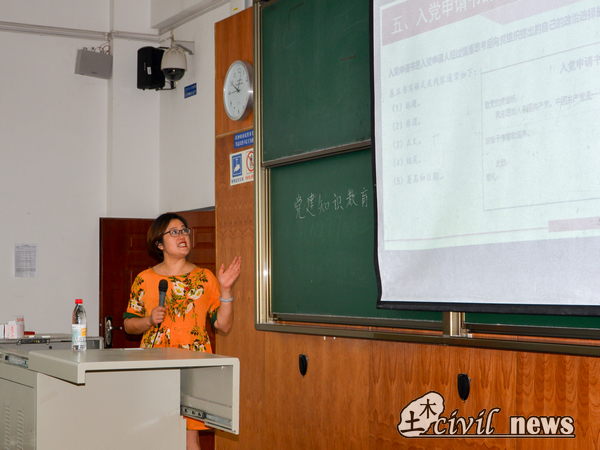 怎样才能通过重重选拔,成为合格的党员?刘萍老师对此做了详细的解释。首先,努力提升自身思想境界,真正了解共产主义和党的内涵,其次,积极发挥先锋模范作用,加强思想道德品格的培养。此外,刘萍老师还给新生们讲解了发展党员的入党流程,土木学院的党组织设置,入党申请书的写法。