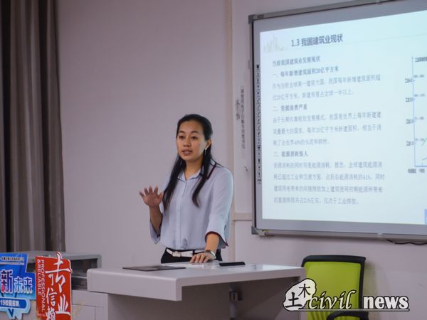 最后,为明确BIM领域的未来发展,讲解老师详细地介绍了我国建筑发展现状,作为当前全球第一建筑大国,我国每年新增建筑面积超过20亿平方米,新建房屋占全球一半以上,但资源浪费严重,且建筑用电带来的间接排放加上建筑使用初期能源所带来的直接排放共占21%左右,仅次于工业排放。但早在上世纪二十年代,“像造汽车一样造房子”的概念就被法国建筑大师柯布西耶在《走向新建筑》中提出,人们就开始了建筑工业化的思考和探索。因此,在未来的科技发展浪潮中,BIM将会占据一席之地。提问环节中,讲解老师回答了毕业生们的相关问题。神秘的BIM领域在交流中渐渐揭开了面纱。