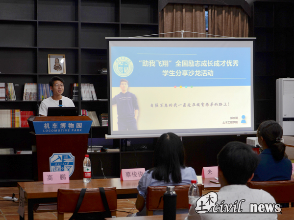 最后一位分享的嘉宾是来自力学与工程学院2014级的同学许磊。他认为大学的时光是用来学习如何把人做好、把学问做大的。他鼓励同学们参加学科竞赛,因为他认为竞赛是科研的预演,但不应该盲目地参赛,应该选择适合自己的项目,同时平衡好学业与竞赛的关系。
