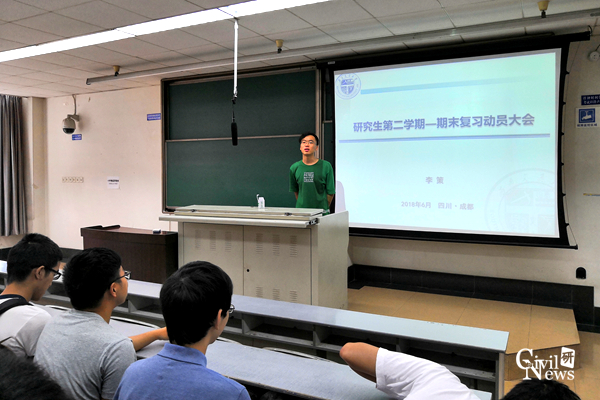 2018年6月15日上午,研究生2017级学硕隧道一班在逸夫馆4319教室举行了“期末复习动员大会”和“庆祝端午活动”。本次活动由班长李策组织进行开展,班级全体成员参加了此次活动。