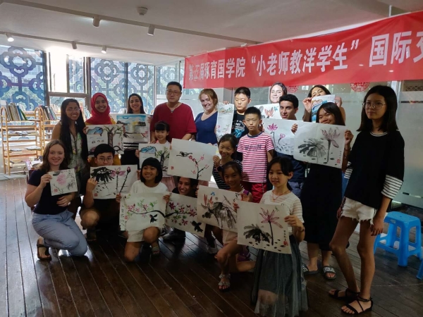 8月7日,土木学院保护文化小组来到成都市琢育国学院,开展此次社会实践活动。此次活动以发扬十九大精神、传播中国传统文化为目的,主要内容是帮助外国志愿者了解中华文化精髓,如书法、国画、剪纸等,以此来加强国人对传统文化的保护意识,同时使得这些中华瑰宝走向世界。