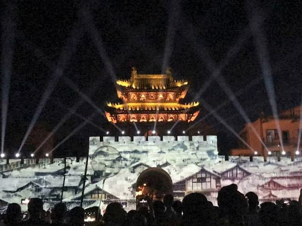经过前期一个月多月的准备,8月3日下午实践队伍抵达阆中古城。当天晚上,我们来到阆中古城西门,一起观看了投影在巍峨城墙上当地文化剪影。从千古诗篇到《三国演义》张飞的传奇故事,从丰富的古迹文物到旅游文化产业的飞速发展,我们徜徉在古城2300多年的悠久历史中,惊叹于这座古城的独特魅力,也在直观感受上对古城有了初步的了解。