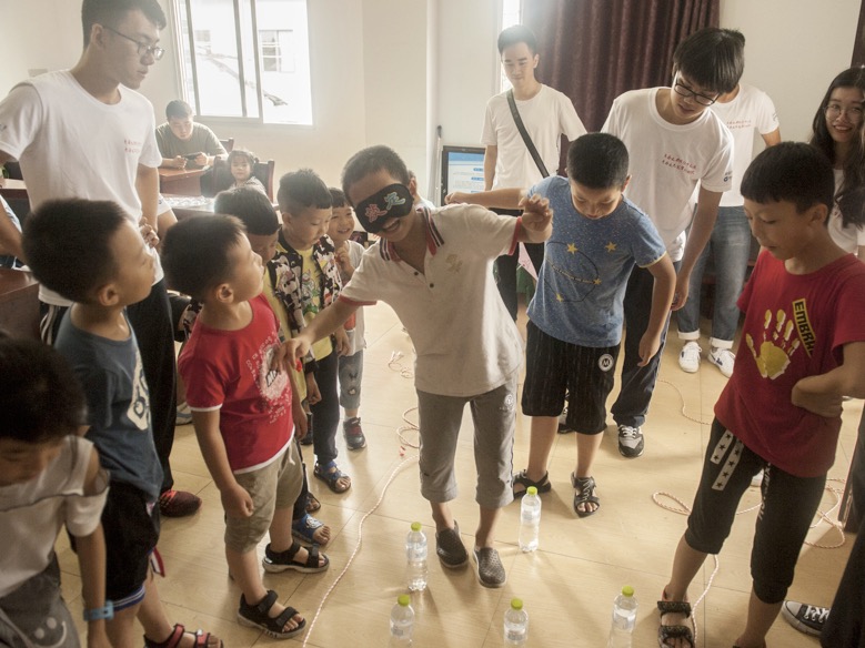 活动主要是通过地雷阵,夹气球,一块钱两块钱,两人三足这四个游戏展开,通过这四个游戏让孩子们学会合作,自信,团结,分享。每个游戏结束后,我们都给孩子们发放了礼物,孩子们都玩的很开心。游戏期间正值几位孩子的爷爷奶奶来看望孩子,看到孩子们玩的很开心,爷爷奶奶们都很欣慰,对我们说孩子父母都在外打工,有这些人陪着孩子,他们也很放心。我们听了很是动容,这就是我们活动意义的所在。