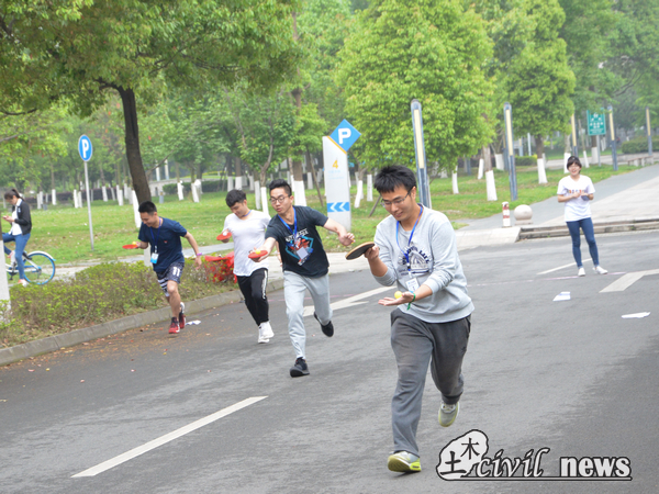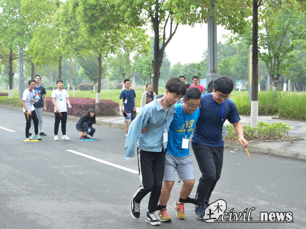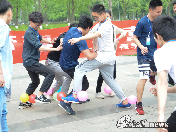 第三环节是室外活动。同学们来到图书馆前的广场,先后玩了飞纸飞机,运送乒乓球,在趾压板上做下蹲和“三人四足”四个小游戏,到达终点的为胜利者。在这种有压力的竞争环境下,同学们都发挥出了自己的潜能,齐心协力地完成了这次比赛。最后环节是踩气球,过程中,大家玩得很尽兴,各种组队结盟,出其不意,十分精彩。最后气球剩得最多的小组获得第一名,所有小组都获得了赛后小礼品。