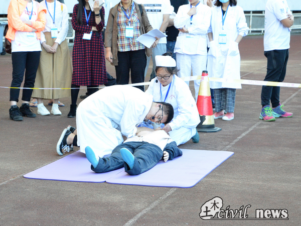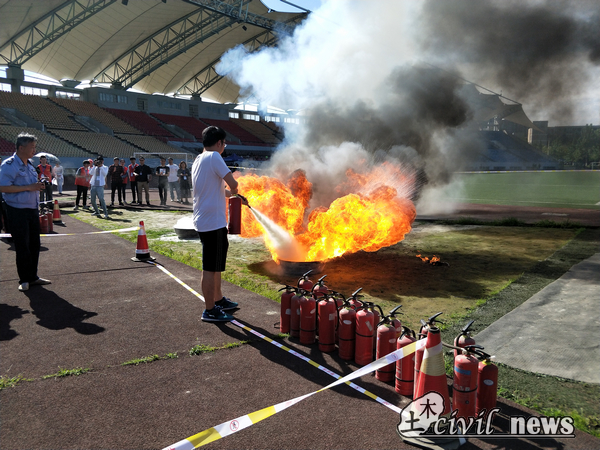 田径场上,来自各个学院的近3300名同学按顺序排列整齐,整理好队形后,校党委副书记张学龙在主席台上就此次演习进行了总结,并且告诫同学们要有安全意识,遵守安全法律。大会之后,田径场上开放了3处体验区:灭火器实践体验区、灭火超感体验区、心肺复苏紧急救援体验区,供有兴趣的同学自由体验;2个灭火器体验区都有着专业的工作人员指导参加体验的同学,而心肺复苏紧急救援体验区也有一批来自医学部的老师和同学在一旁指导。