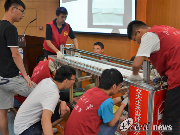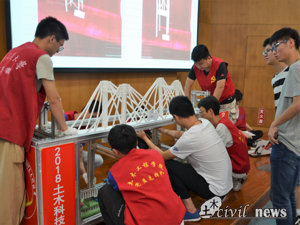 比赛过程中,选手们与评委老师激烈的思想碰撞,各种创意层出不穷,这种对科学的探索与钻研追求不正是科研精神的体现吗?中午1时许,本科生桥梁承重比赛正式结束。最后,向取得满意成绩的参赛选手表示祝贺,也希望未能走到最后的选手们再接再励,也愿交大学子设计的桥梁承载未来。