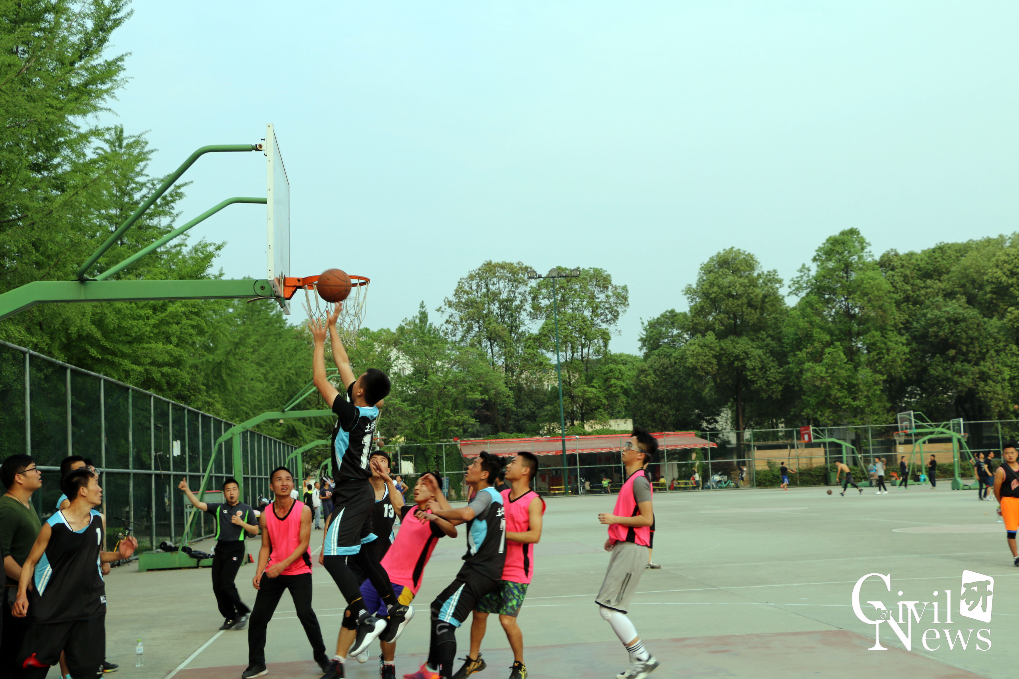 研究生会举办的研究生院际篮球联赛第一场的比赛中展开了激烈的较量。身着蓝黑色球服的就是我们性吧