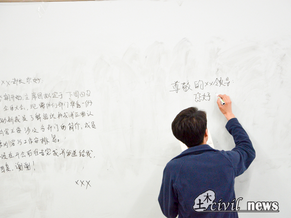 随后,任老师将大家分为四组,进入了小组讨论环节,给各个小组布置了“写一篇通知“的任务。同学们热烈讨论,积极的为任务出谋划策。讨论结束后,同学们按老师要求在黑板上写出了一份份严谨周到的书面通知。