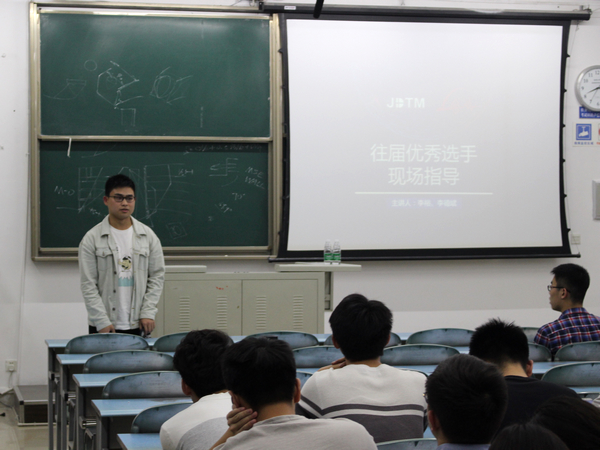 问答环节告一段落后,由现任16级辅导员的优秀学长李裕给参赛者们传授比赛经验。谈到模型的制作过程,他提到——沙要压实、白卡纸内折的部分和沙紧密结合等细节方面。同时,李裕认为做模型是一个尝试的过程,鼓励参赛者们积极实验,多做多练。