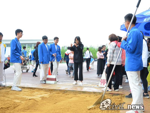 女子跳远的场地上先后进行了教职工立定跳远和女子立定跳远,土木学院的运动健儿们在沙坑上不断飞舞,跳跃着。男子立定跳远的场地上,黄宇鹏以5.46米的成绩荣获决赛第五名。