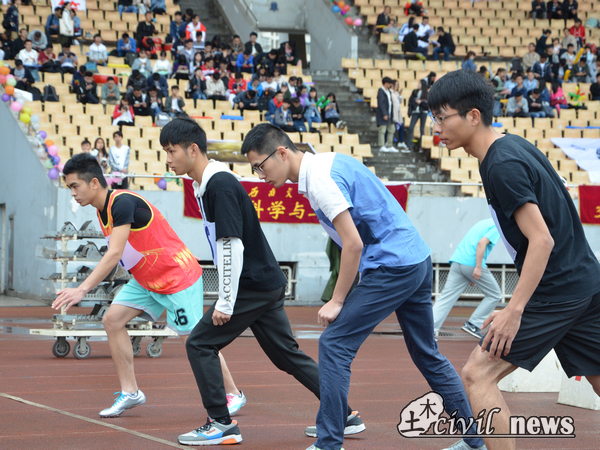 随着一声震人心弦的枪声,径赛开始了。开场项目便是女子50米预赛,五组比赛分外激烈,点燃了赛道上的第一束火焰。第二组中5号选手是土木学院的武桢寓同学,枪声响起后,她化身飞鸟,冲向终点线,最终取得了小组赛第二名的好成绩。随后上场的练玉梅、赵文玉、朱凌凤、杨艺同学都取得了不错的成绩。紧接着的项目是激动人心的男子50米预赛,来自土木学院的五名选手在赛场上展现了他们的风采。