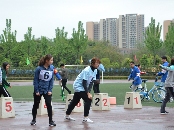 与此同时,与径赛紧张的氛围不同的是草坪上的趣味运动会项目——企鹅漫步,将一颗球夹在膝盖中间进行跑步接力,摇摇摆摆的跑步姿势宛如一只只可爱的企鹅。土木学院的男孩女孩们在这项比赛中体现出了无与伦比的默契,他们最终取得了第二名的好成绩。