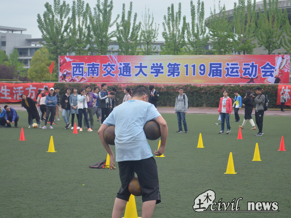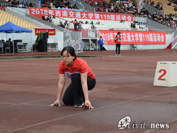 的赵文玉同学在女子跳远决赛中取得第五名的好成绩。在其他的项目中也可见我们土木人矫健的身影,他们一次次地挑战着极限,突破自我,即使摔倒在沙坑中,也绝不退缩。