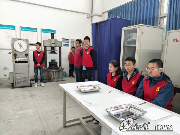 晚六点,科创中心工作人员集合,在土木工程实验教学中心布置岩土工程比赛赛场。