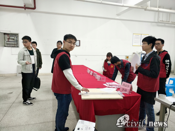 四月,“交大土木设计有限公司杯”2018土木科技月比赛正如火如荼的进行着,激烈的赛况,出彩的作品,无一不吸引大家热切的目光。但在赛场上总有一群身着红色马甲的工作人员,他们维持着场地秩序,把握着比赛的节奏,让一切有条不紊,井然有序;这场比赛的顺利进行,离不开科创中心这群工作者背后付出的心血。