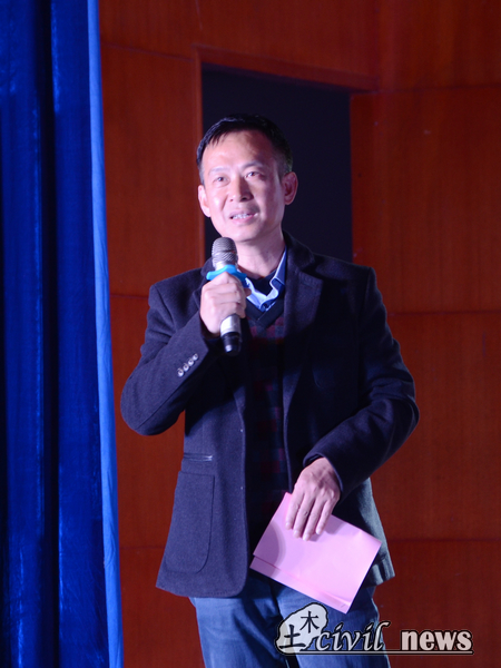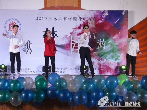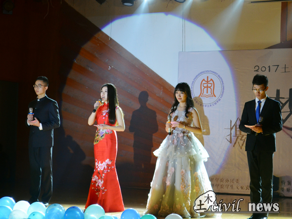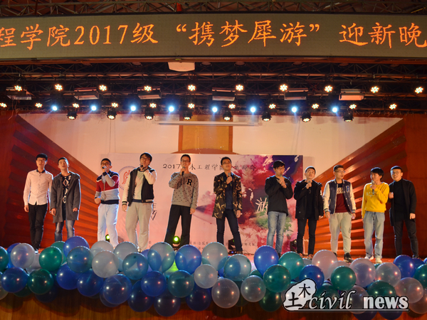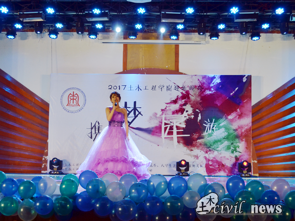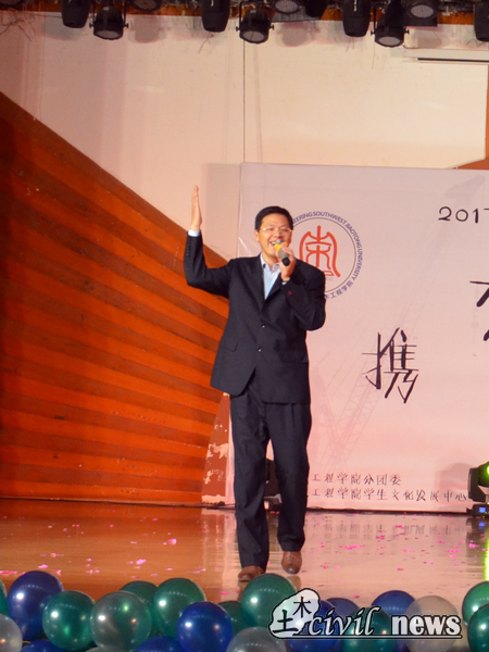 随着晚会的开始,蒲黔辉院长上台致辞,他表示,年轻人们遇到了好时代,当今处处都是机遇。另外他对在座的土木学子们提出两点希望,一是希望土木学院的新鲜血液们能够在突变的学习环境中学会坚持,明白通往成功的路上没有捷径;二是希望学生们在复杂的网络环境中有自己的立场和思考,用平常心看待社会问题。最后,他对本次晚会表示了自己衷心的喜爱与希望。