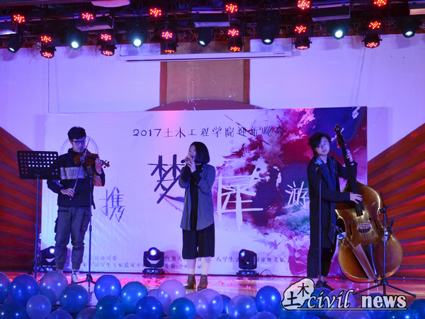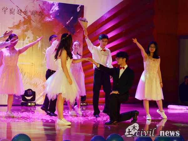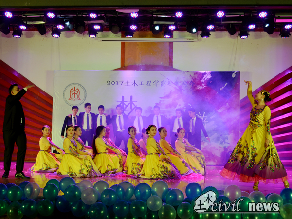 翩翩舞步中,踏出的是土木学子的青春火花。第一个节目是由性吧及ASCE协会带来的歌舞剧——《Summer Night》,活泼愉悦的歌声中,舞者们面含春风,尽情享受着台上的每一秒钟,她们的活力感染了台下的每一个观众。