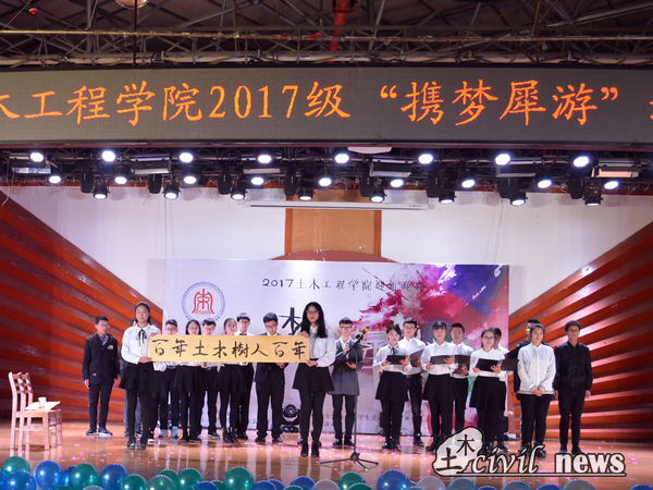 晚会的最后,是由全体2017级助理辅导员合唱的歌曲《爱因为在心中》,歌声中人群缓缓散去。求学之路上,有土木的你我相伴。
