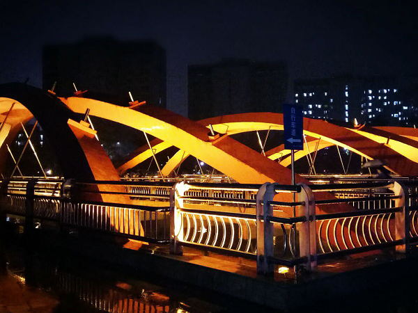 正想着,前方出现了一抹熟悉的橘红色的灯光,原来是已经快走到虹桥。我猛然想起如今国赛模型中的拱弧线总是处理得不好,虹桥这么好的拱桥,何不看看找找灵感?便快步向前走去。此时,天已经半白了,地面上却依旧模模糊糊。虹桥的灯光照在雾气缭绕的河面上,有如梦境般美丽。河面依旧漆黑,却跨立着光彩的虹桥,如此交大美景,真是妙不可言的东西呢。要不是通宵的忙碌,怎么能看到如此动人的景象?想到这,疲惫的身体似乎也略微有些好转。我拿出手机,拍下了拱的形状,又拿出纸笔,描起大致轮廓来,希望这曼妙的外形也能为我所用呢。看着虹桥一点一点映入纸中,我不由感叹,缘,也是妙不可言的东西呢。今天坐车就以这个为蓝本,修改下固有方案吧,小得意呢。