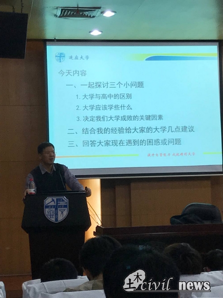 于1日晚上邀请了学院党委李锦红书记,在图书馆二号报告厅为新生们做了入学教育专题讲座。