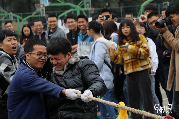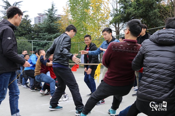 2017级研究生拔河比赛正式开始。此次大赛以促进各班级间交流为宗旨,丰富学生们的课余生活为目的,用比赛的形式为学生们提供了展现各班风采的机会。通过比赛发扬了团队精神,增强了同学们之间的凝聚力。