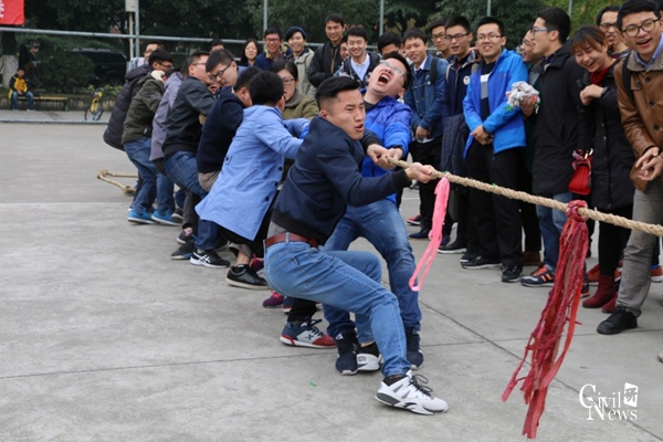 2017级研究生拔河比赛决赛在九里校区篮球场展开,本次拔河比赛旨在促进班级间交流,提高同学们运动热情,增强班级凝聚力。经过昨日半决赛的激烈对抗,2017级专硕结构2班,专硕道铁2班,学硕道铁1班,专硕桥梁1班成功晋级四强,展开冠军亚军季军的角逐。